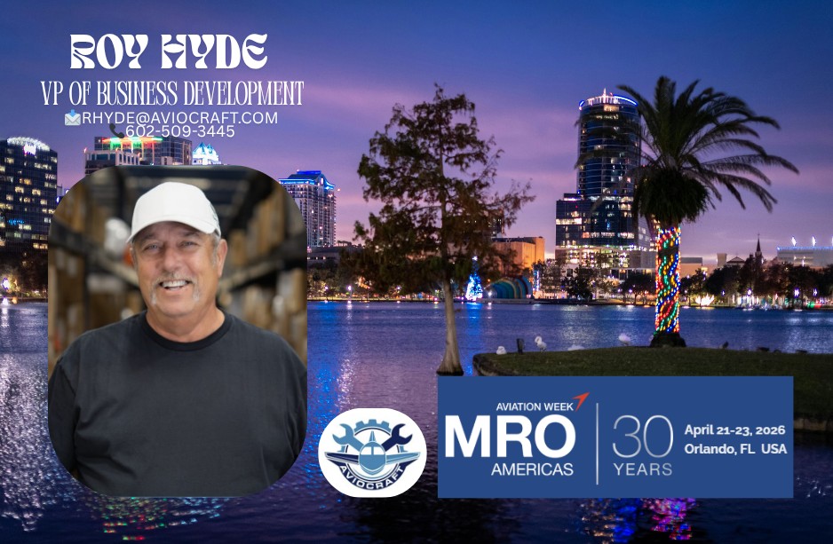 Aviocraft is excited to share that our COO, James, VP of Business Development, Roy Hyde, and Director of Engineering, Kevin Donwen will be attending MRO Americas 2026 in Orlando from April 21–23, 2026. We look forward to connecting with industry partners, exploring new opportunities, and continuing to strengthen relationships across the aviation maintenance community. Let’s connect if you’ll be there!